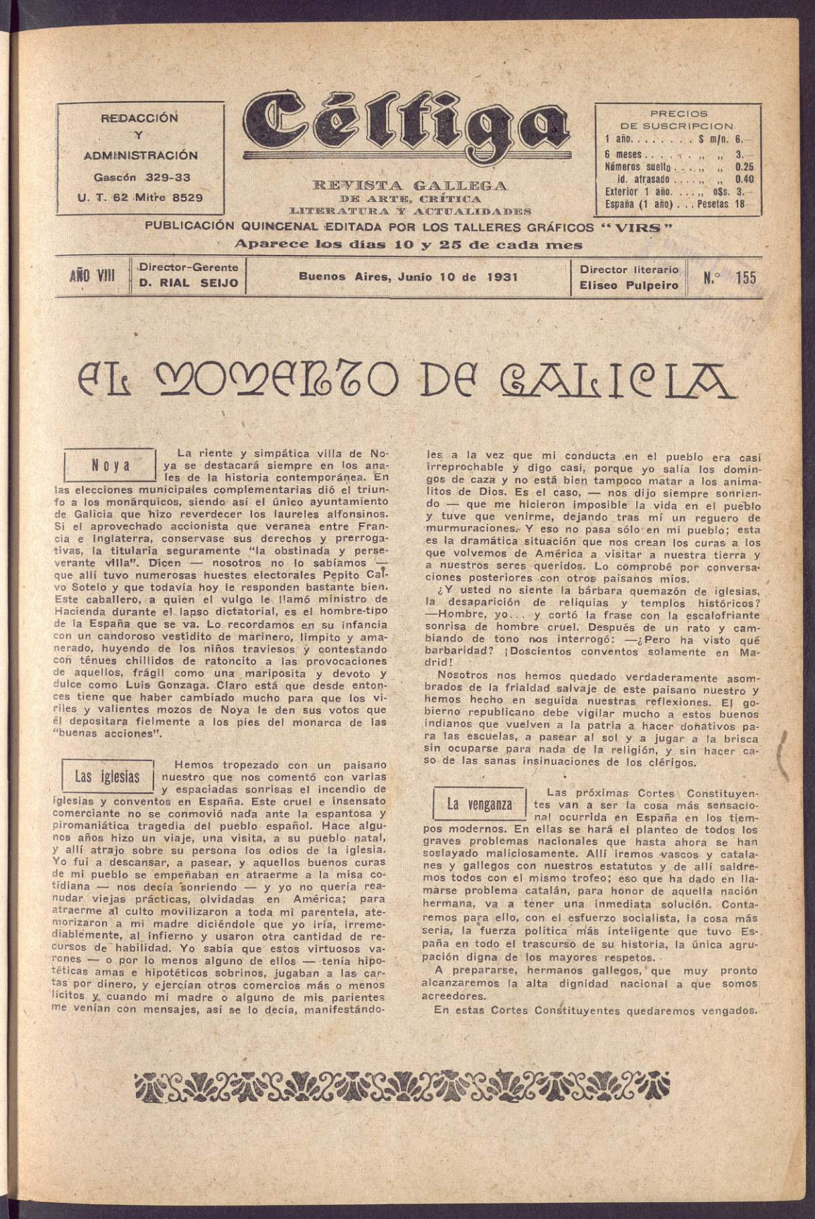 Revista de arte, crítica, literatura e actualidade que se publicou na Arxentina entre 1924 e 1932. Tiña unha periodicidade quincenal e, aínda que incluía textos en galego, o castelán era a lingua predominante. Nas súas preto de 40 páxinas incluía colaboracións de nomes importantes da galeguidade, como Castelao, Francisca Herrera Garrido, Ramón Cabanillas, Vicente Risco ou Xosé Filgueira Valverde, entre moitos outros. Os contidos ilustrados da revista abordaban a cultura galega nun sentido amplo, con colaboracións literarias, notas biográficas de artistas e outras novas da actualidade galega e arxentina, aínda que tamén atopamos textos que trataban asuntos menos vencellados á vida cultural, como a política ou a agricultura.